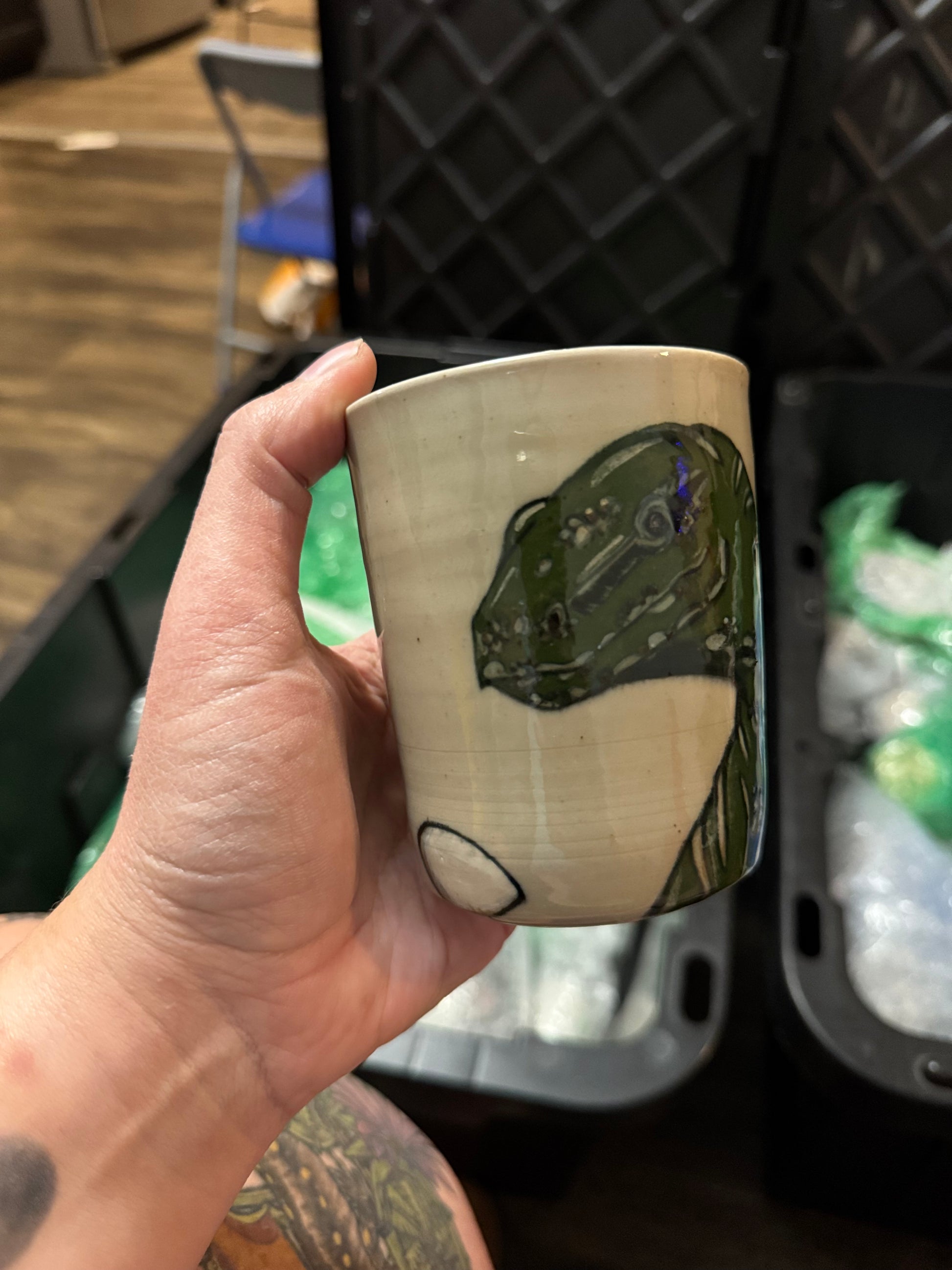 This whimsical tumbler is hand thrown and hand painted with Amaco Velvet Underglazes and fired to cone 10 making it food safe and a wonderful addition to your cup collection.